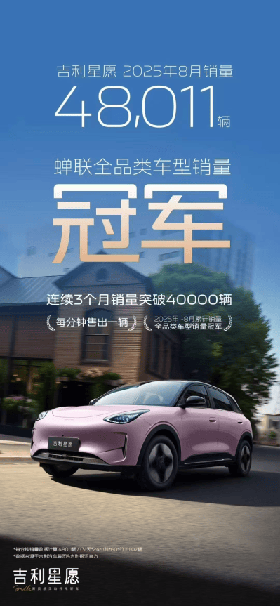 8月狂销48,011辆、接连三个月销量打破4万辆、单周12,120辆的成果——当以每分钟售出一辆的速度继续领跑全品类车型销量榜时,其背面的商场逻辑已不只是产品力的胜出,更在于用通明的价格体系与真实的购车权益,线级纯电车的下手门槛。